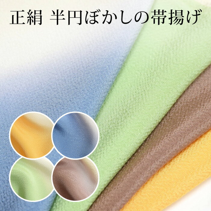 〔6/11 1:59までポイント5倍〕〔アウトレットSALE 6800〕帯揚げ ちりめん ぼかし 正絹 ちりめん ブルーグレー グリーン 黄色 茶色 クリーム 帯揚 縮緬 着物 つゆくさ〔メール便対象〕
